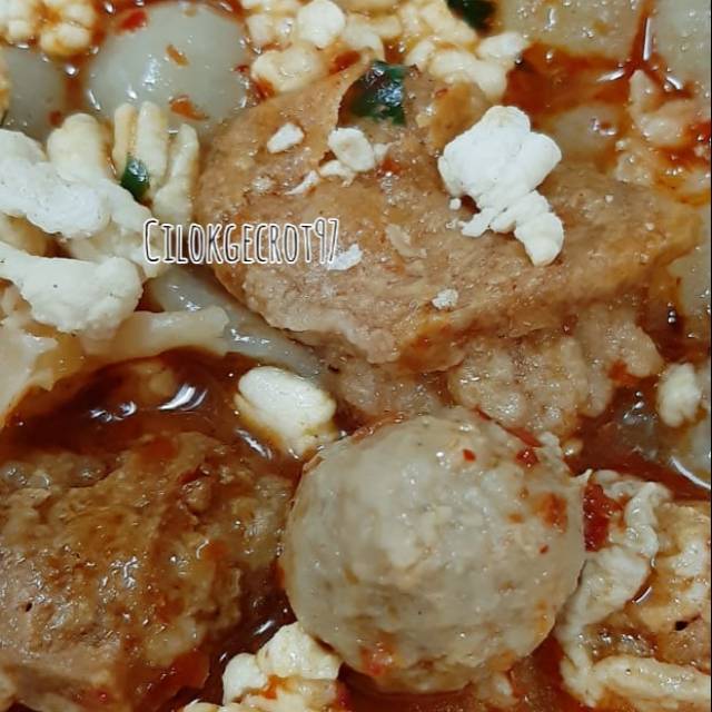 2. Masukan cilok, baso dibelah, dan batagor kecil