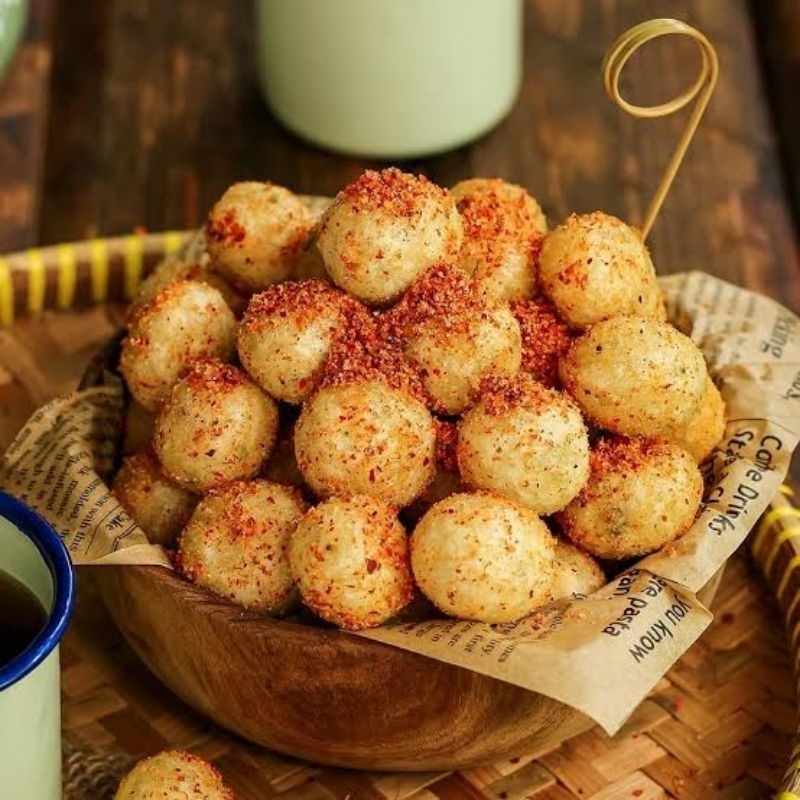 Makanan ini terbuat dari tepung tapioka atau tepung kanji yang dibentuk menjadi bola-bola kecil dan kemudian digoreng hingga crispy. disajikan dengan bumbu khas yang terdiri dari cabe rawit, gula, dan garam, sehingga memiliki rasa yang pedas, manis, dan asin.