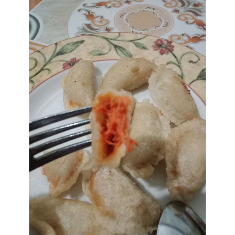 cireng empuk isi ayam suwir pedas.goreng dengan api sedang.maknyuss di nikmati selagi hangat.