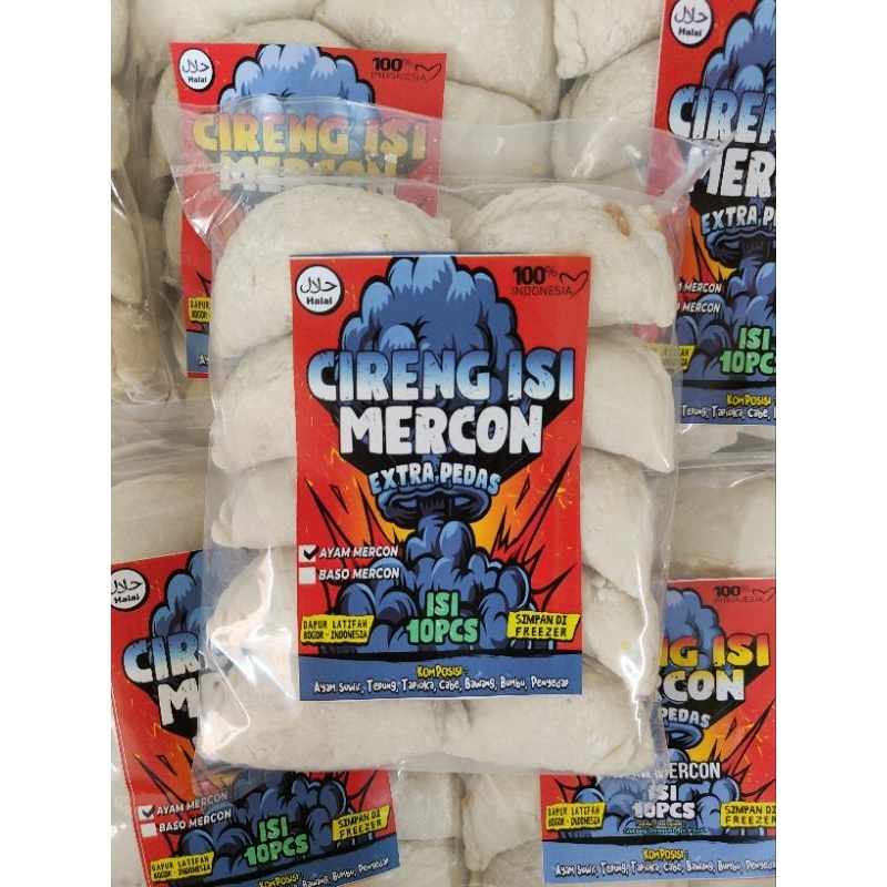 Cireng Mercon Extra Pedas, cemilan cireng yg berisi suwiran ayam pedas.