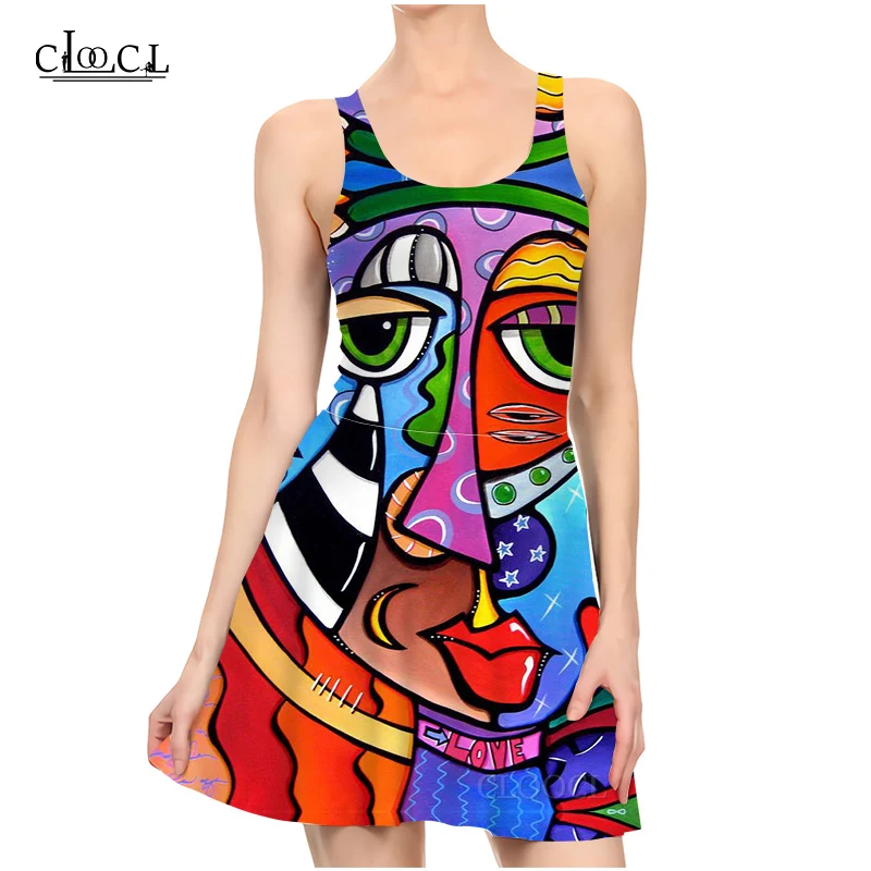 CLOOCL НОВЫЕ геометрические арт узор 3D летние платья с принтом на каждый день для женское платье без рукавов вечерние сексуальное обтягивающе...