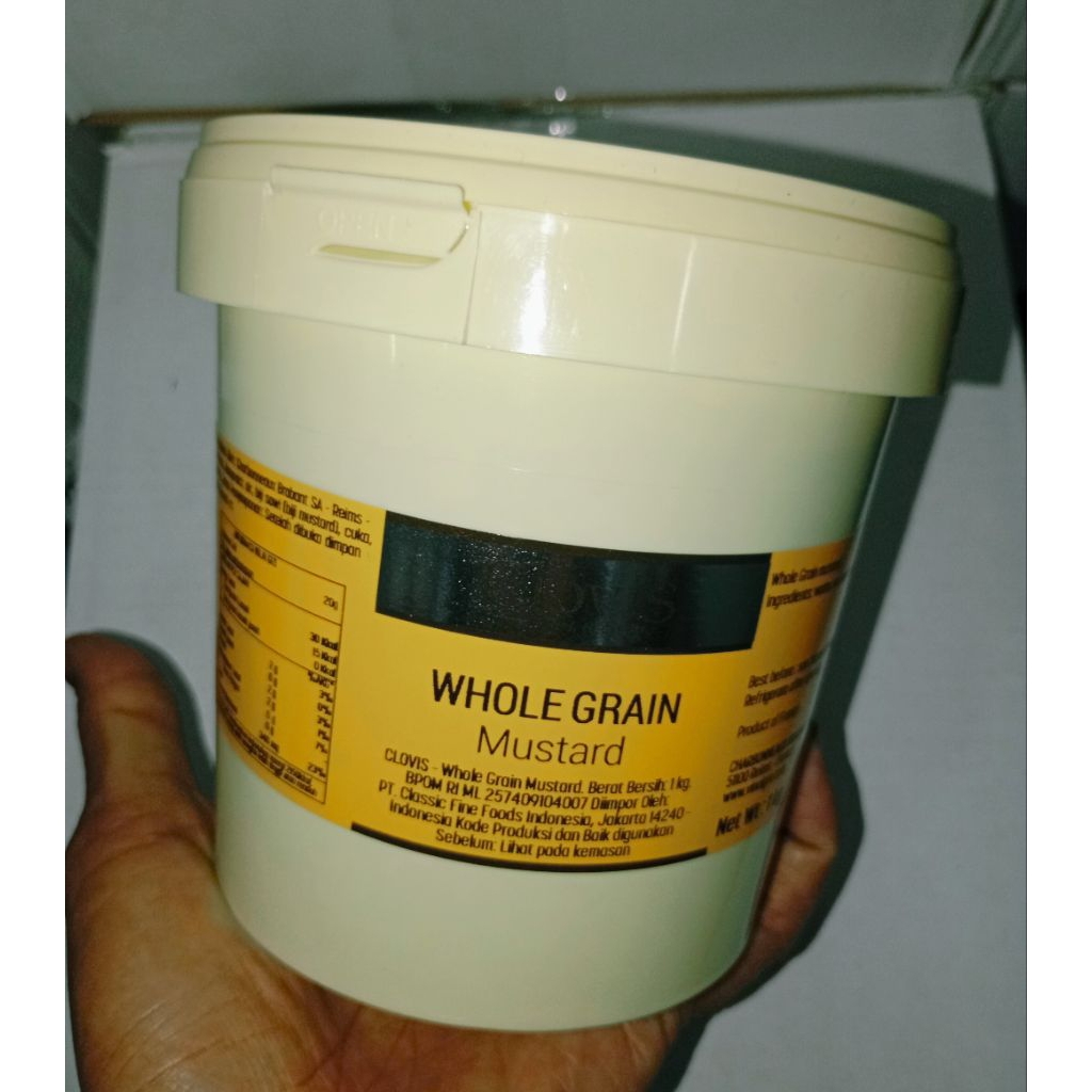Produk dalam gambar adalah CLOVIS Whole Grain Mustard dalam kemasan ember 1 kg.