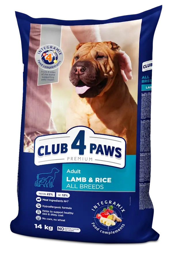 CLUB 4 PAWS Клуб 4 лапы сухой корм для взрослых собак всех пород ягненок с рисом 14 кг