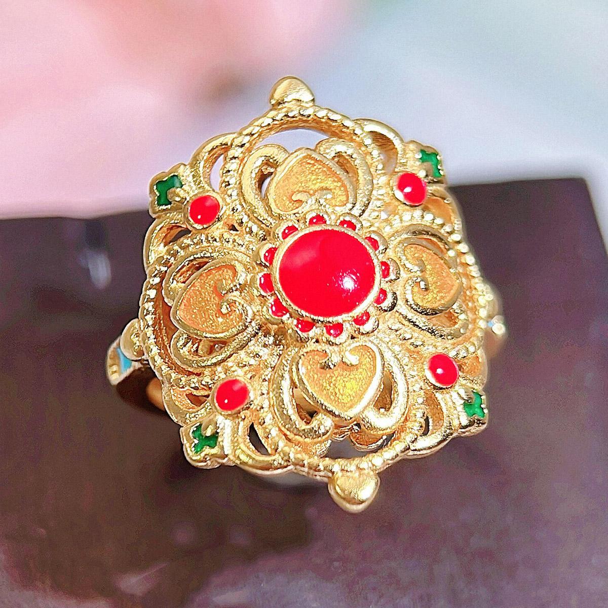 CMM Винтаж Красное Капельное Масло Желтого Золота Цвет Регулируемое Коктейльное Кольцо Для Женщин Бижутерия золотой
