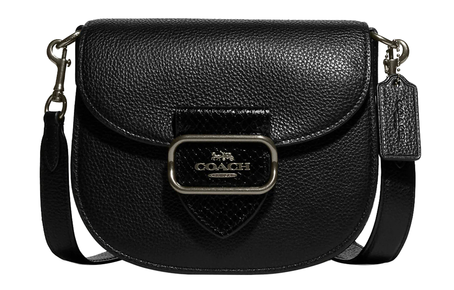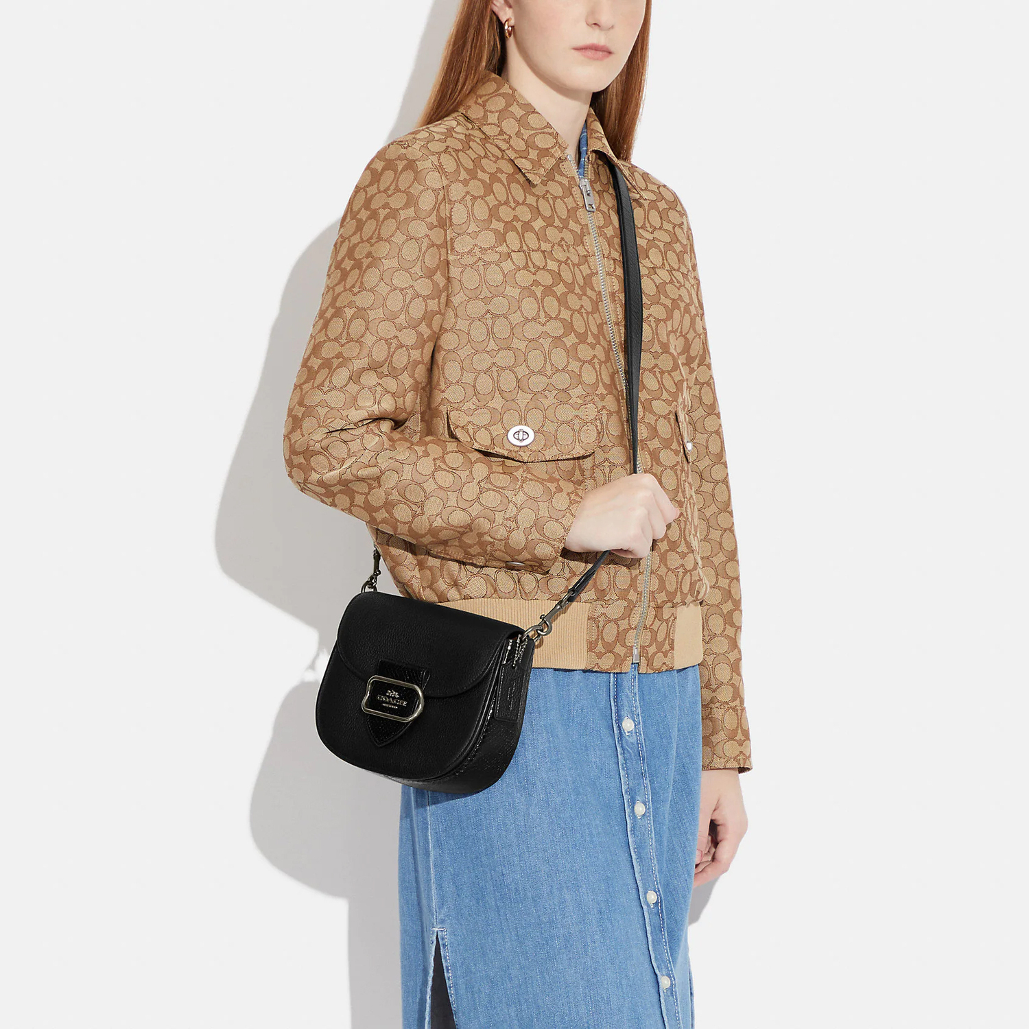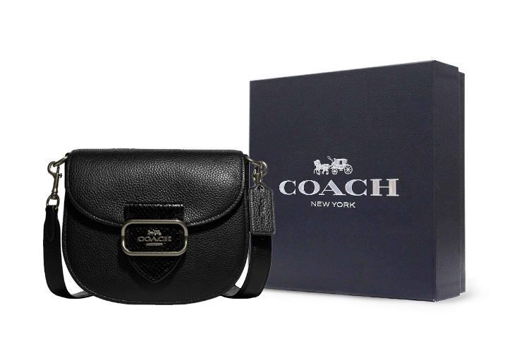 COACH Кожаная седельная сумка через плечо маленькая женская черная
