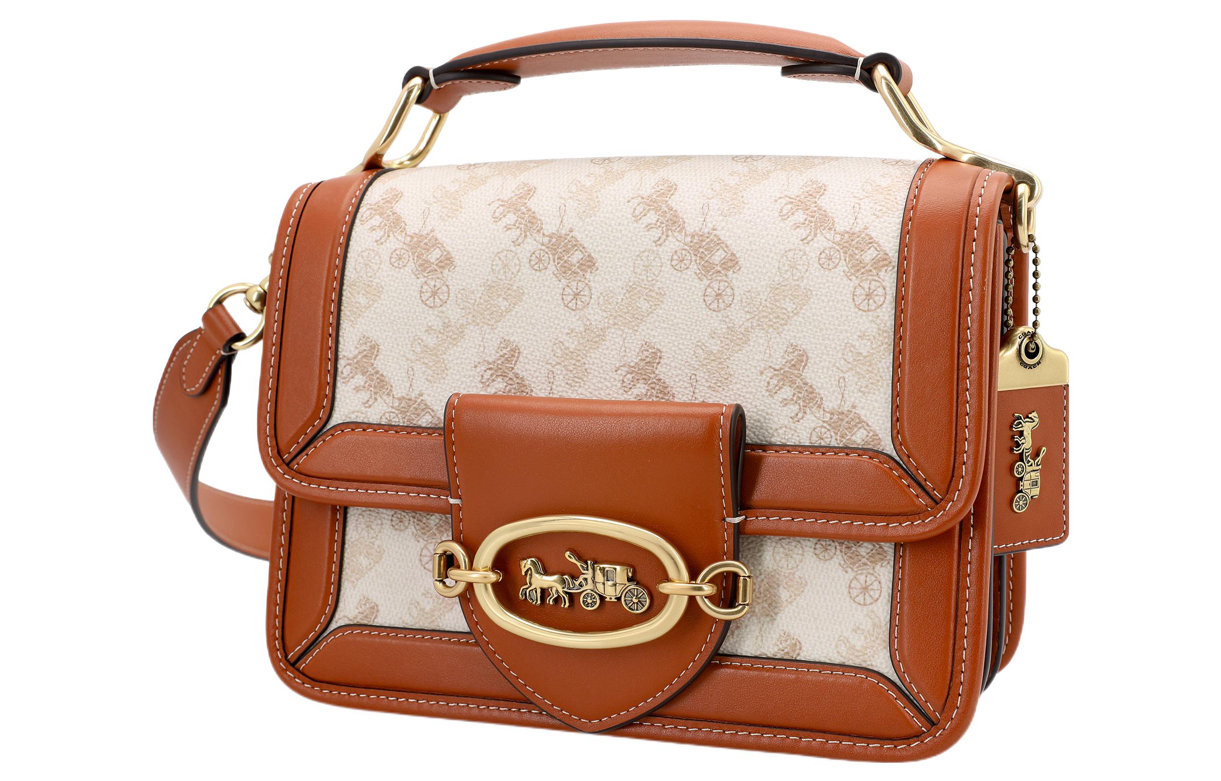 COACH Кожаная сумка через плечо маленькая женская карамельно-коричневая и белая