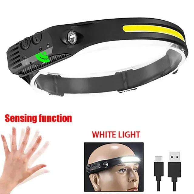 COB светодиодный налобный фонарь с 3 режимами, встроенный аккумулятор USB перезаряжаемый налобный фонарь для кемпинга и рыбалки