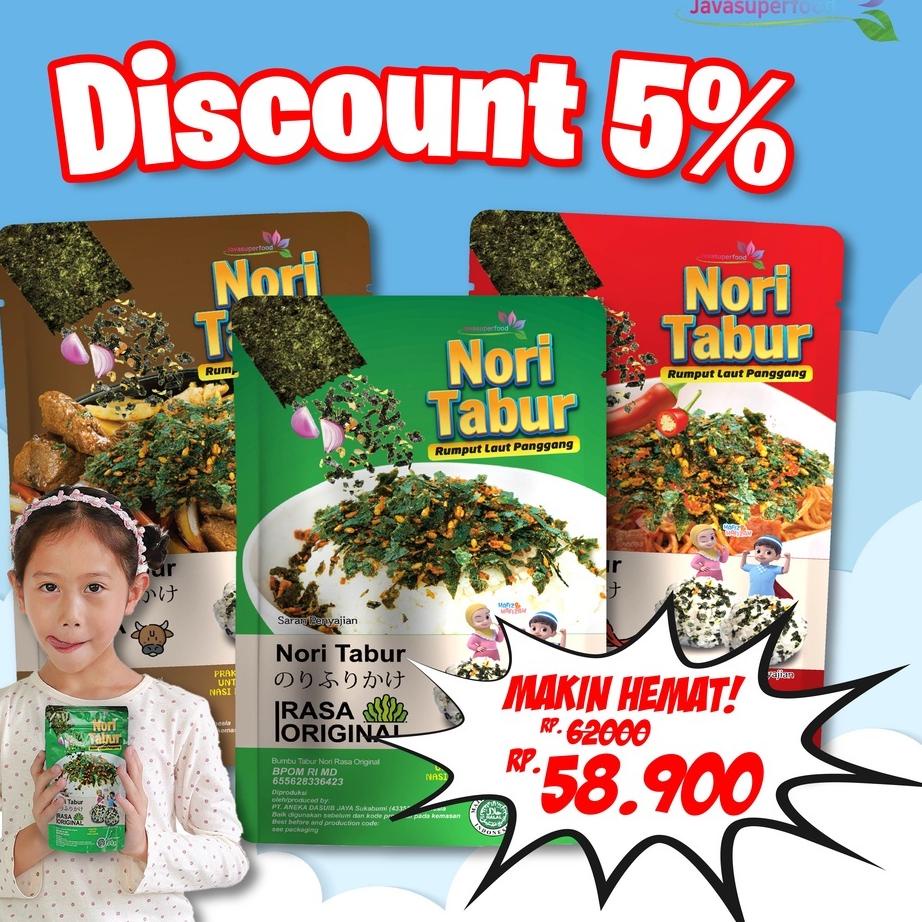 Nori Tabur Java Super Food adalah Nori Tabur yang terbuat dari bahan - bahan yang berkualitas serta memiliki rasa yang enak dan lezat.