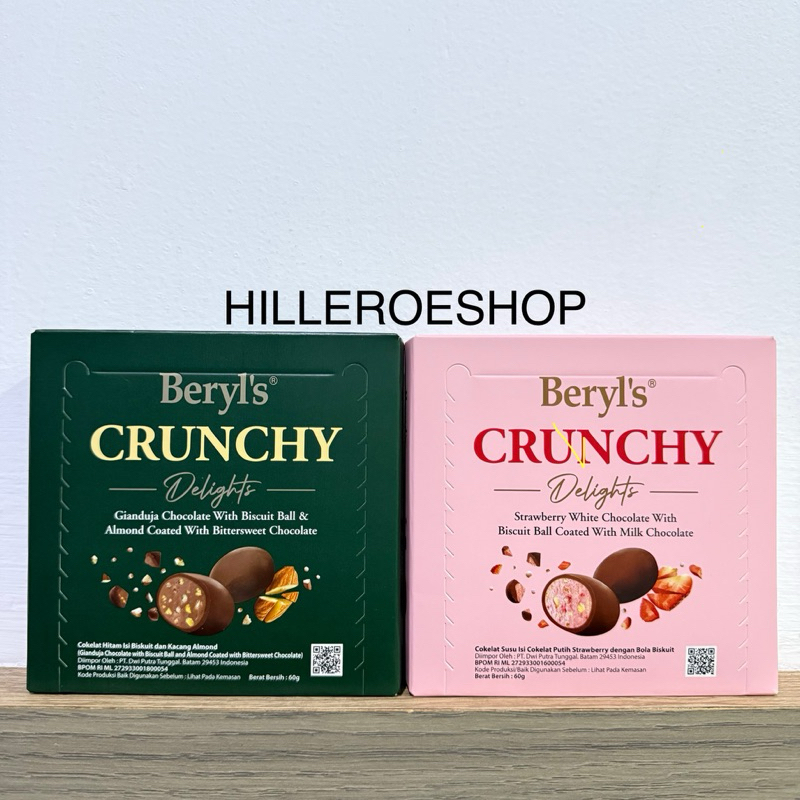 COKLAT BERYL'S 60GRAM CRUNCHY DELIGHT STRAWBERRY WHITE CHOCOLATE WITH BISCUIT COATED MILK CHOCOLATE GIANDUJA CHOCOLATE WITH ALMOND BITTERSWEET COKELAT MALAYSIA HALAL BERYLS