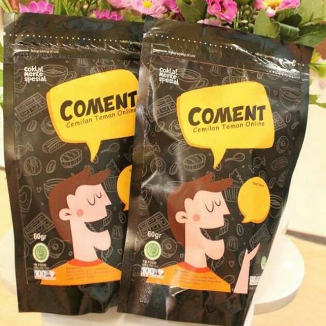 Coment cemilan teman online Kacang mede di baluri coklat dengan kemasan unik untuk cemilan teman online