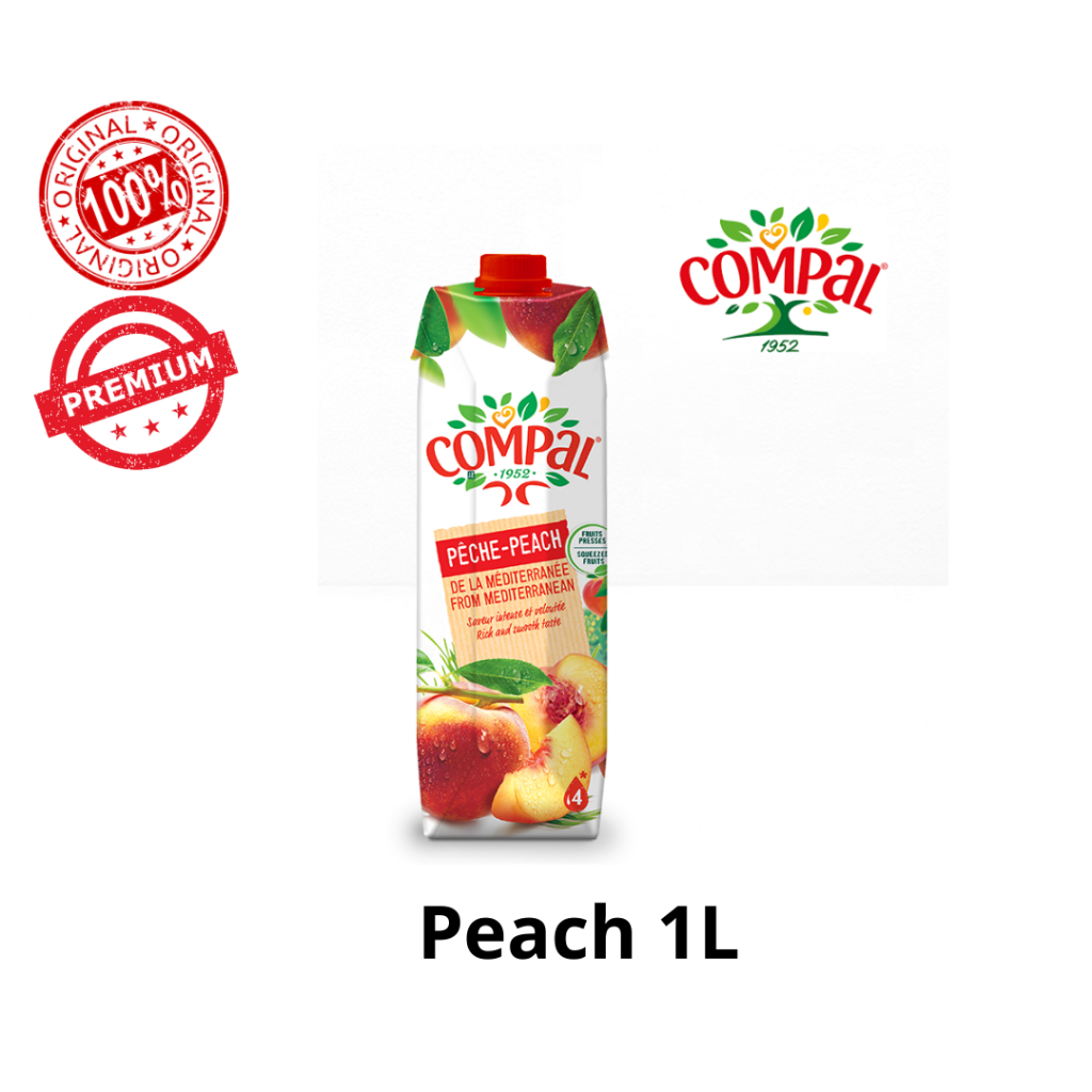 Compal Nectar Peach adalah minuman buah jenis nectar, dibuat dari jus dan pulp buah persik (peach) dari konsentrat. Minuman ini diperkaya air, gula, dan vitamin C (asam askorbat), dengan kandungan buah minimal 50% sesuai standar nectar buah. Rasa persik matang yang segar dan warna cerah menciptakan tekstur lembut dan kaya pulp khas produk Mediterania.