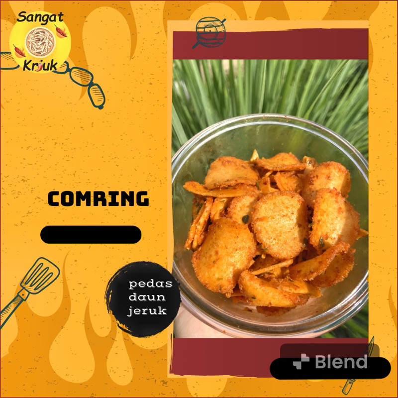 Comring yang super renyah dan gurih dengan varian pedas dan original, pas bgt buat nemenin makan pake nasi anget dan dibuat lauk. Cocok buat nemenin kamu nyemil dimanapun kapanpun. Yang gak suka pedas ada juga varian rasa original yg super renyah dan enaaak.