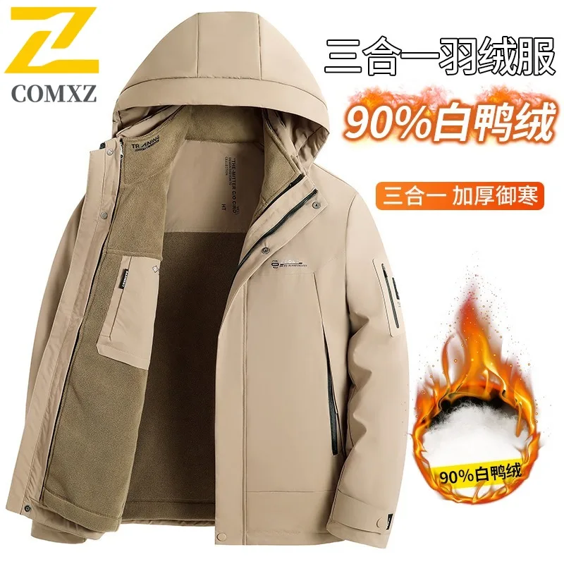 COMXZ Новый зимний пуховик, модная легкая удобная парка с капюшоном для кемпинга, съемная внутренняя утолщенная теплая одежда