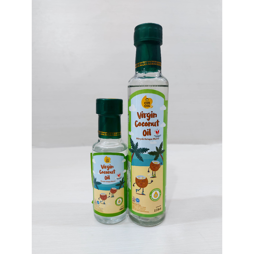 Concos Virgin Coconut Oil adalah minyak kelapa murni yang dibuat dengan metode cold pressed, tanpa pemanasan atau tambahan kimia. Kandungan utamanya adalah asam laurat yang memiliki sifat antibiotik dan anti jamur, serta aman dikonsumsi oleh ibu hamil, menyusui, balita hingga dewasa. Produk ini juga bermanfaat untuk memperbaiki penyerapan vitamin, mineral, dan protein yang bisa dilarutkan lemak.