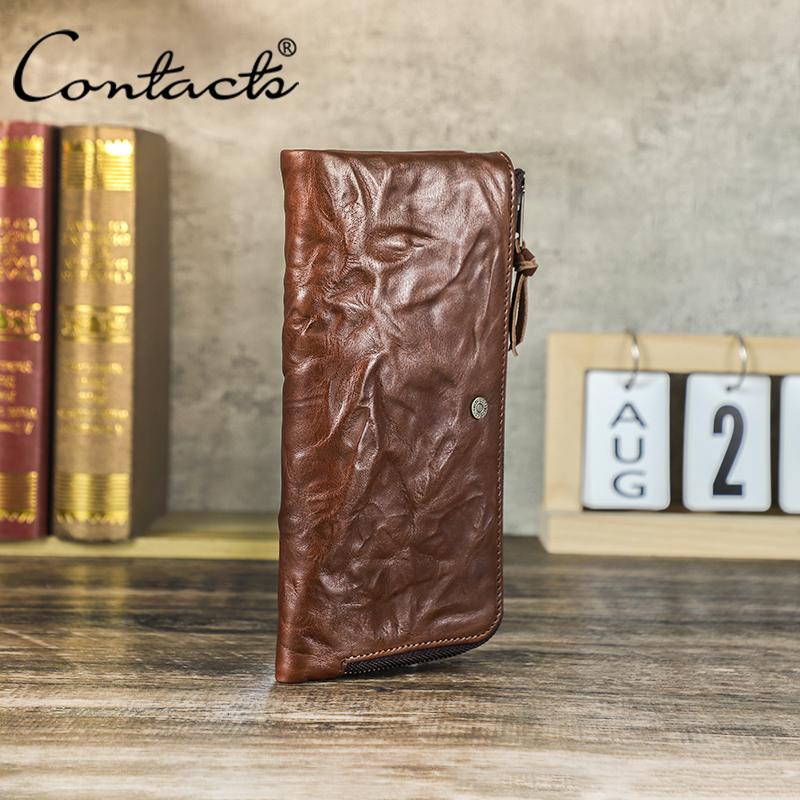 CONTACT S Натуральная Кожа Мужской Длинный Кошелек Повседневный Семейный Другой Ретро RFID Молния Отделение для Телефона Карманы для Карт Дорожный Кошелек кофейный