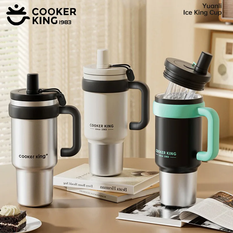 COOKER KING 950 мл соломенная изолированная чашка герметичная чашка для чая термос из нержавеющей стали дорожная автомобильная чашка с ситечком для чая и ручкой