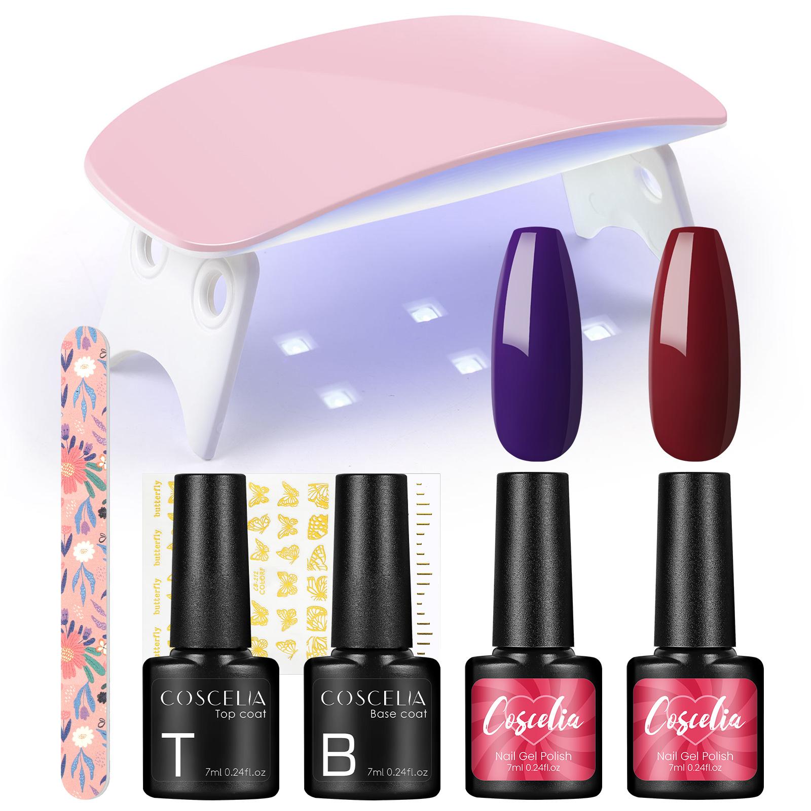 COSCELIA 2 шт. набор для маникюра с гель-лаком для ногтей с замачиванием и УФ-светодиодной лампой, маникюрные инструменты, наклейки для ногтей, набор УФ-геля для ногтей
