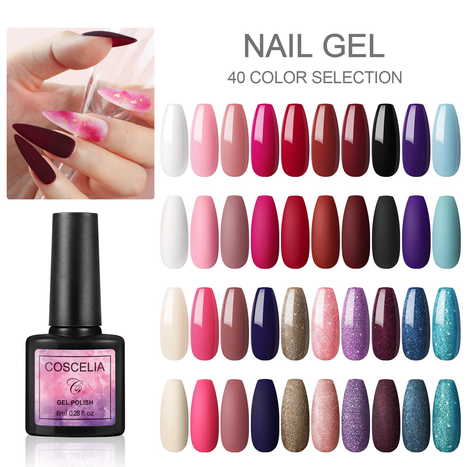 COSCELIA 40-цветный гель-лак для ногтей, полуперманентный гель-лак для ногтей с блестками и классический лак, необходима светодиодная УФ-лампа для сушки и базового верхнего слоя лака