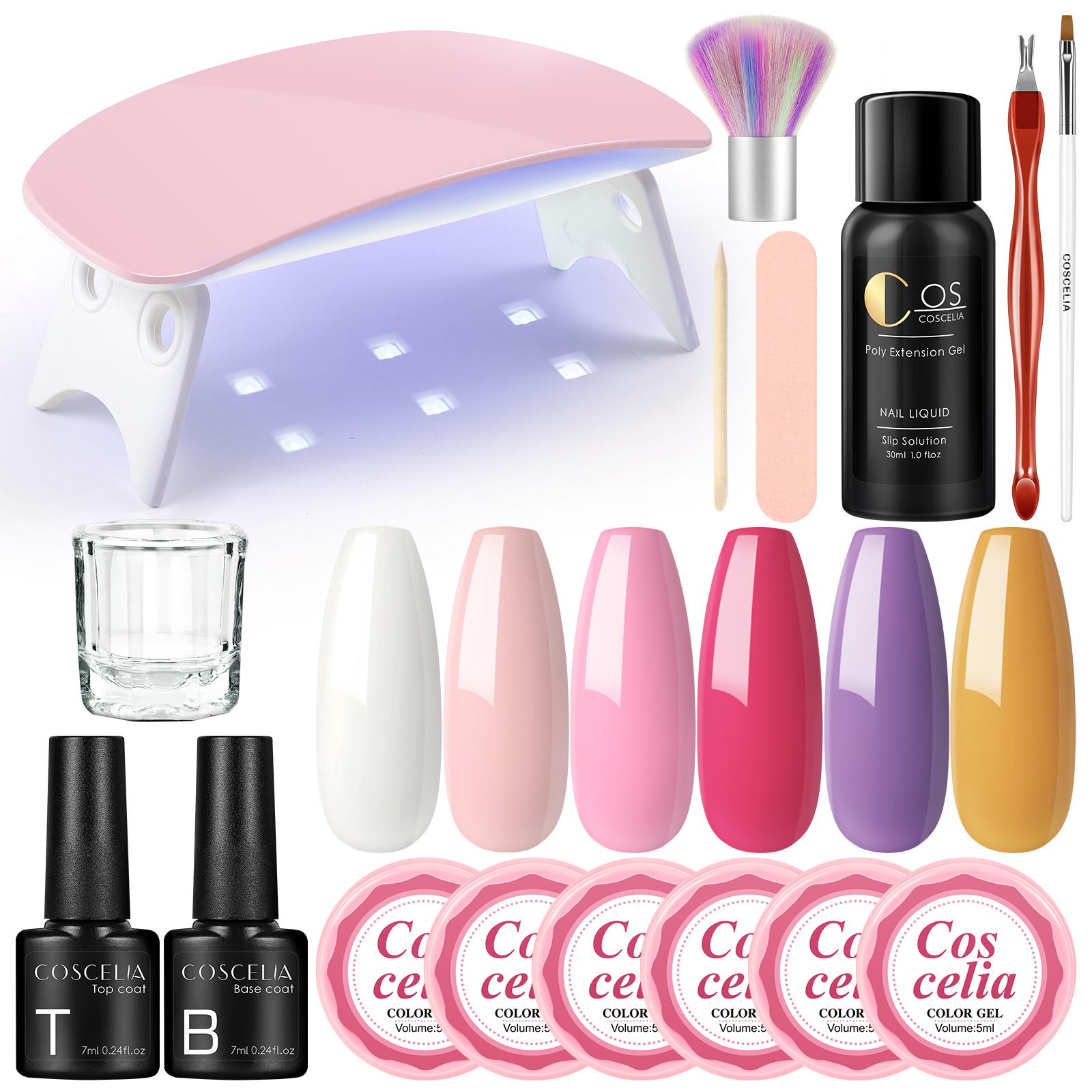 COSCELIA 6 шт. цветной гель-лак для ногтей, замачиваемый УФ-гель-лак, полуперманентное базовое верхнее покрытие, 30 мл очищающего средства плюс и набор УФ-светодиодных ламп мощностью 6 Вт для покраски ногтей