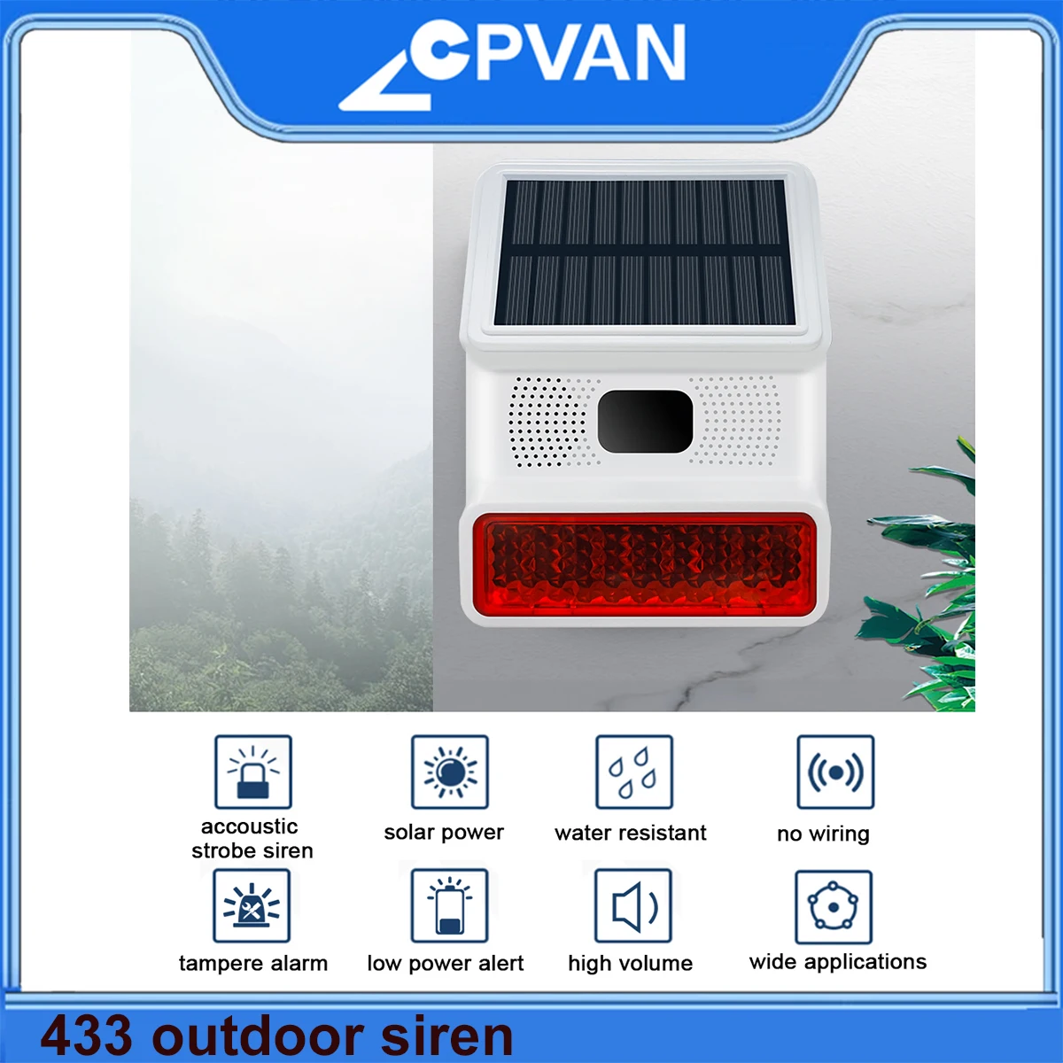 CPVAN уличная солнечная сирена беспроводная водонепроницаемая сирена 433 МГц наружная сигнализация для домашней безопасности охранная сигнализация в сочетании с хостом