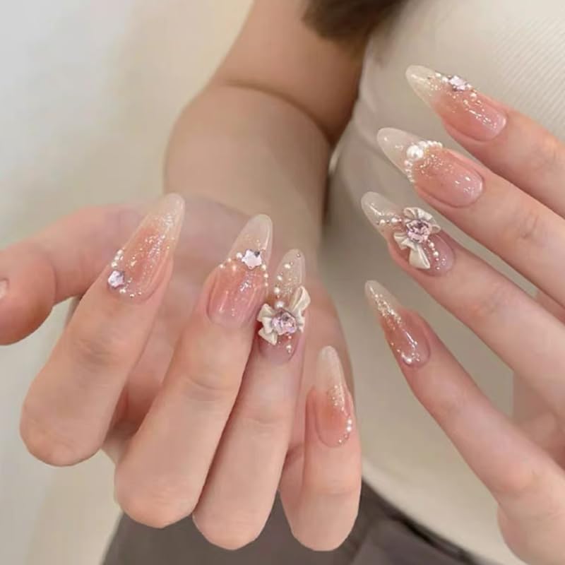 CQJSYL Короткие популярные ногти 24 шт. Типсы для ногтей весна-лето в японском стиле Милые типсы для ногтей ручной работы Градиентные ногти невесты Короткие