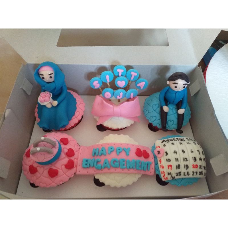 cupcake fondant tema Engagement yang cocok buat tambahan seserahan lamaran.