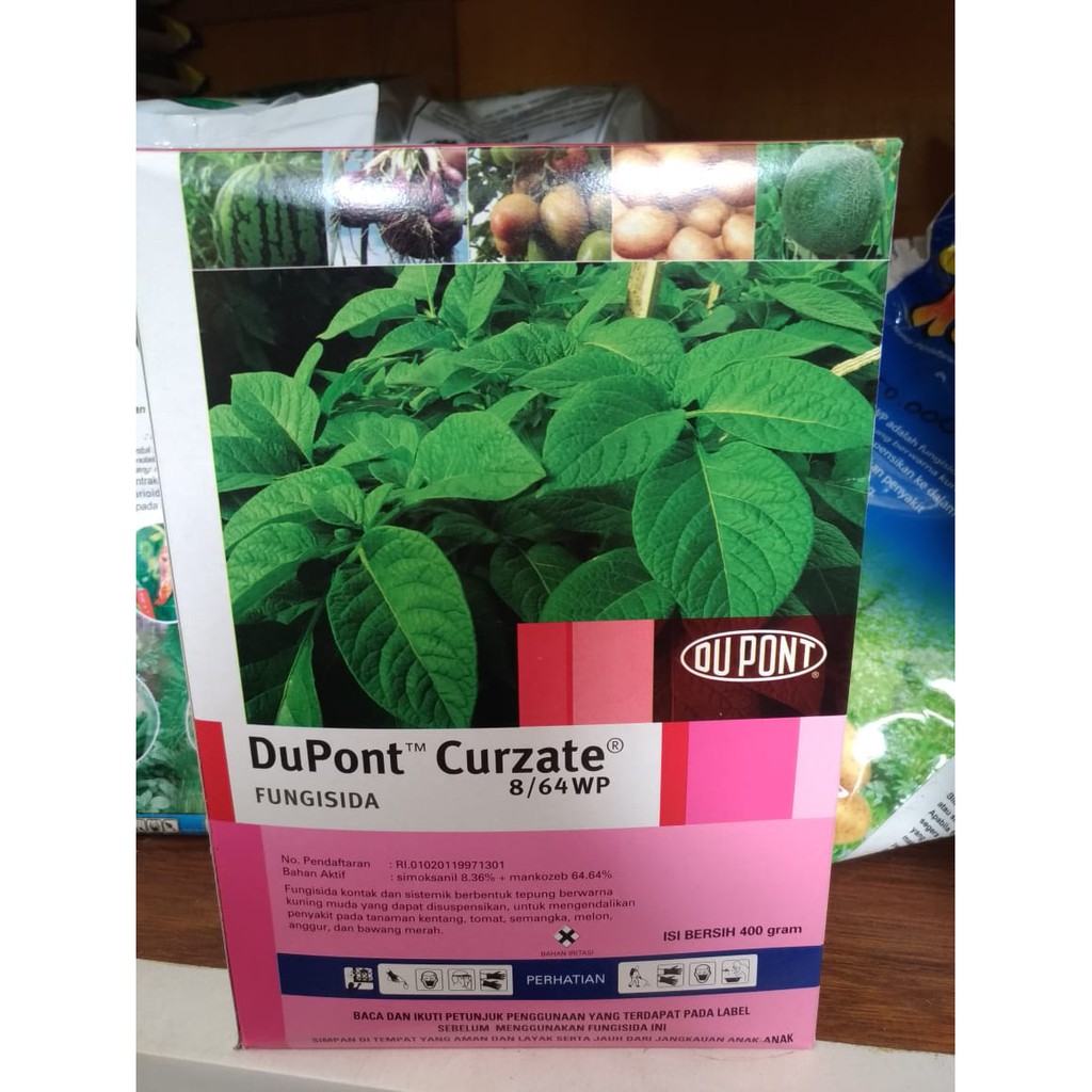 Fungisida Curzate 8/64WP 400 gram. DuPont Curzate adalah fungisida pengendali busuk basah yang melegenda, dengan dua bahan aktif (simoksanil dan mankozeb) memiliki Aksi 3+1, mampu melindungi tanaman secara menyeluruh dari serangan penyakit busuk basah terutama pada tanaman kentang.