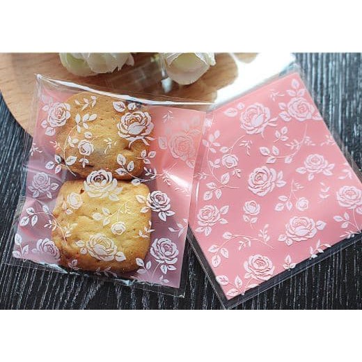 CVCV171 PLASTIK COOKIES - PERMEN - KUE - COKLAT FANCY PINK ROSES 8X8