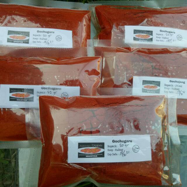 Gochugaru halus kemasan repack 50gr. Cabe bubuk korea halus.
