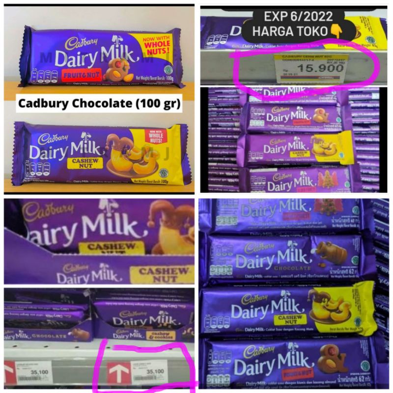 2.coklat Cadbury 100gr exp 2022 harga 20rb/pcs READY