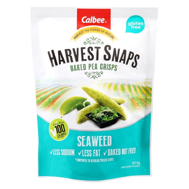 Tasty baked Seaweed Harvest Snaps contain less fat, less sodium and are gluten free compared to regular potato chips!