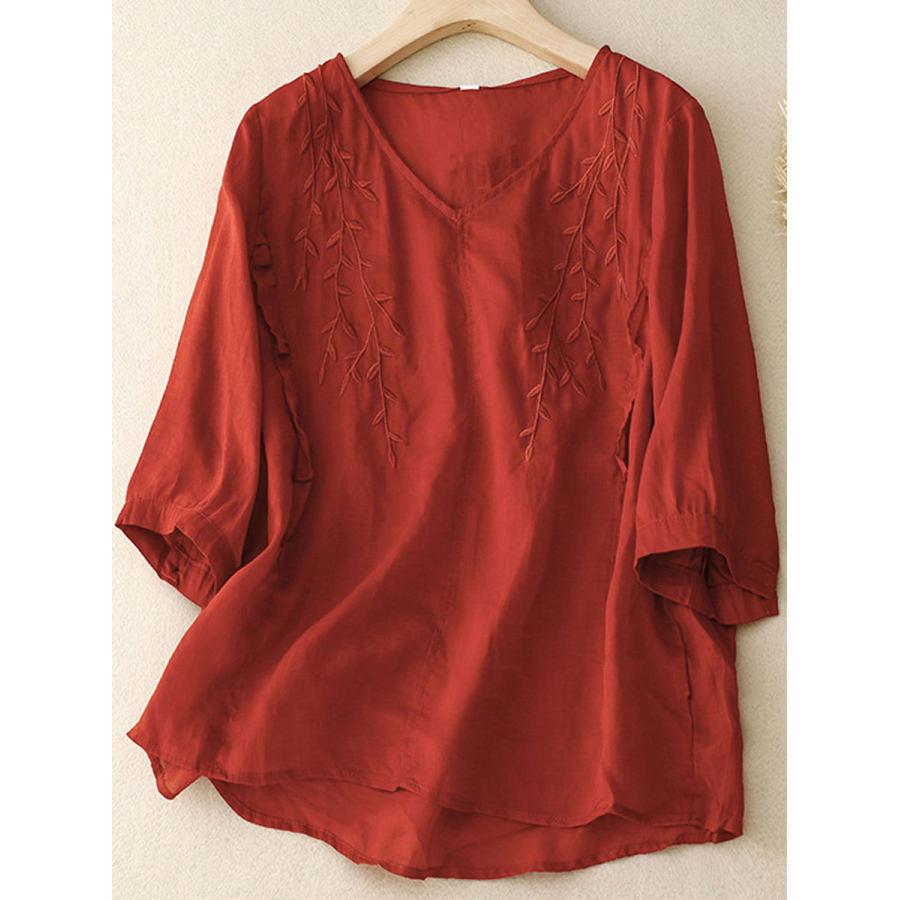 Camicetta A Maniche Corte Ricamata Casual Con Scollo A V