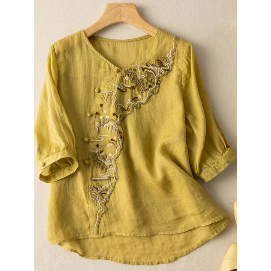 Camicetta A Maniche Lunghe Ricamata Casual Con Scollo A V