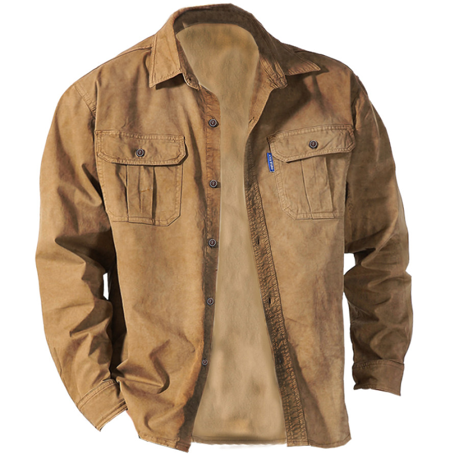 Camicia Da Giacca Da Uomo In Cotone Lavato Con Tasche