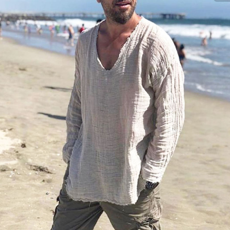 Camicia Da Uomo A Maniche Lunghe Con Scollo Rotondo In Lino Holiday