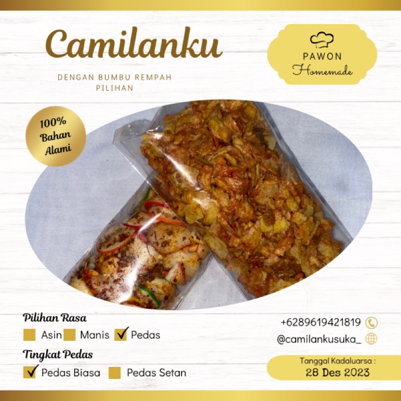 Krupuk pedas dengan varian bumbu rempah pilihan yang tahan hingga beberapa bulan kedepan nih…