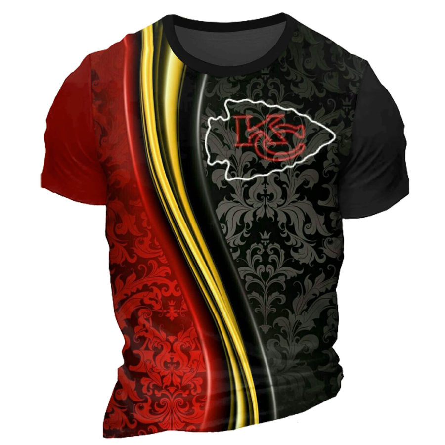 Camiseta De Manga Corta Con Cuello Redondo Informal Para Uso Diario Al Aire Libre Con Estampado De NFL De Kansas City Chiefs Para Hombre