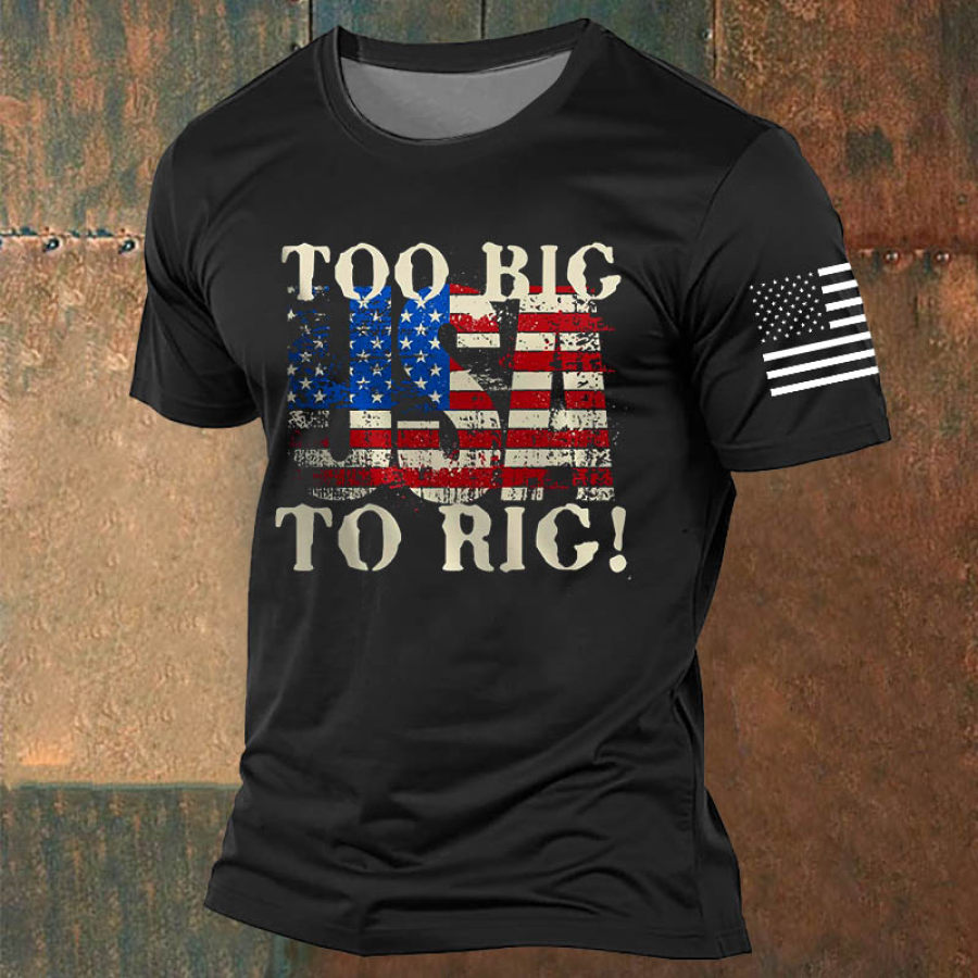 Camiseta De Manga Corta Con Cuello Redondo Para Hombre Estilo Vintage Con Bandera Estadounidense EE. UU. Too Big To Rig