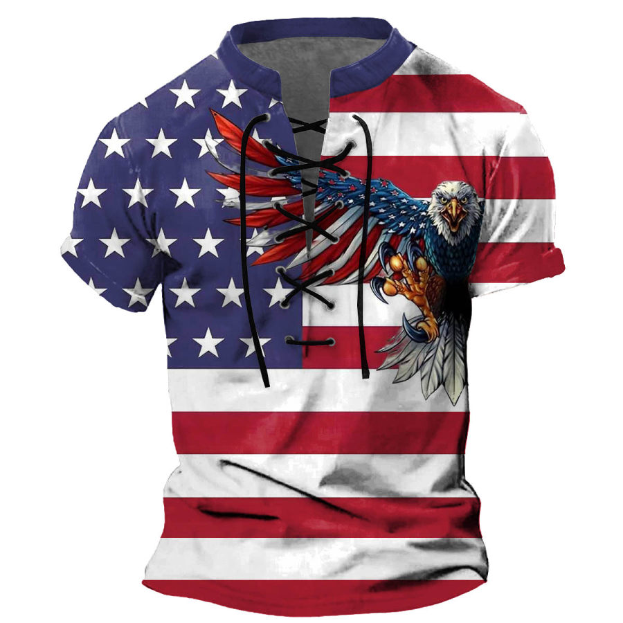 Camiseta Para Hombre Con Diseño De águila De La Bandera Americana Estilo Vintage Con Cordones Cuello Alto Manga Corta Para Verano Para Uso Diario