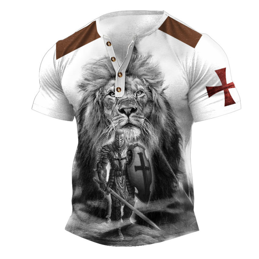 Camiseta Para Hombre Henley Knights Templar Lion Cross Color Block Al Aire Libre Manga Corta Verano Diario Tops
