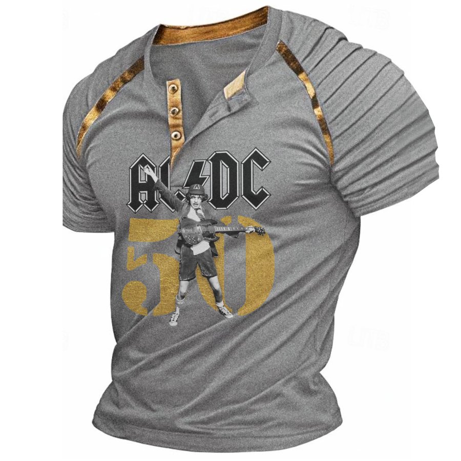 Camiseta Vintage De Manga Corta Con Cuello En V Y Estampado De 50 Años De Hells Bells De ACDC Rock Band Para Hombre