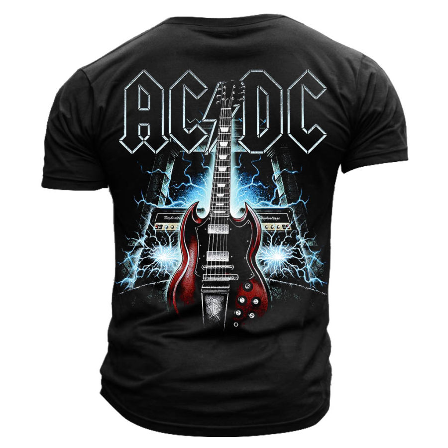 Camiseta Vintage De Manga Corta Con Cuello Redondo Y Estampado De Guitarra De Alto Voltaje ACDC Para Hombre