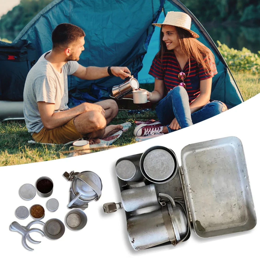 Camping Coffee Tableware Kit Reusable Extra RARE Collectors Multipurpose Camp Cookware Maker Set Portable with Camp Pot Cups Box