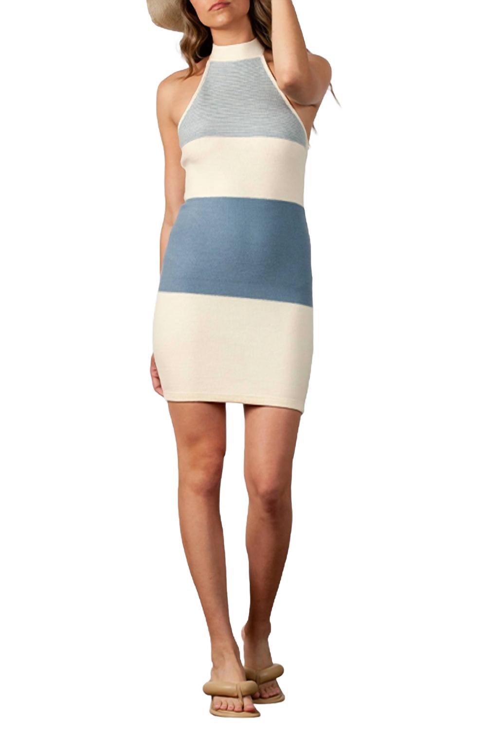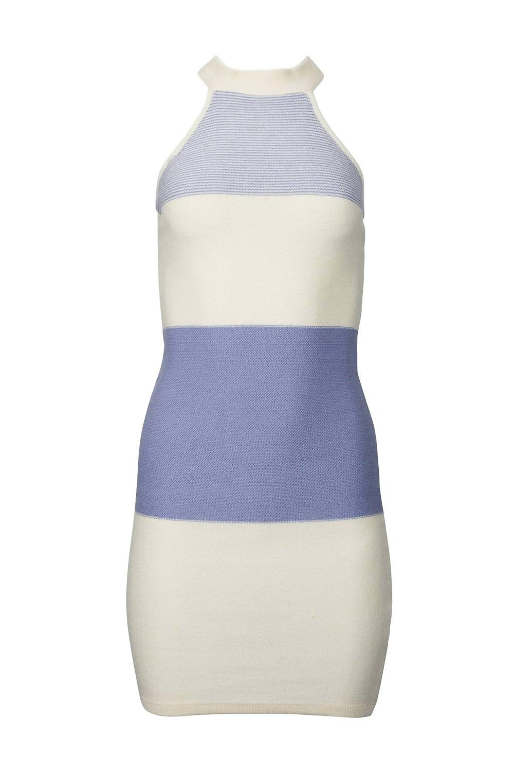 Candytuft вязаное мини-платье на запах с запахом в цвете слоновая кость/голубой LUCCA