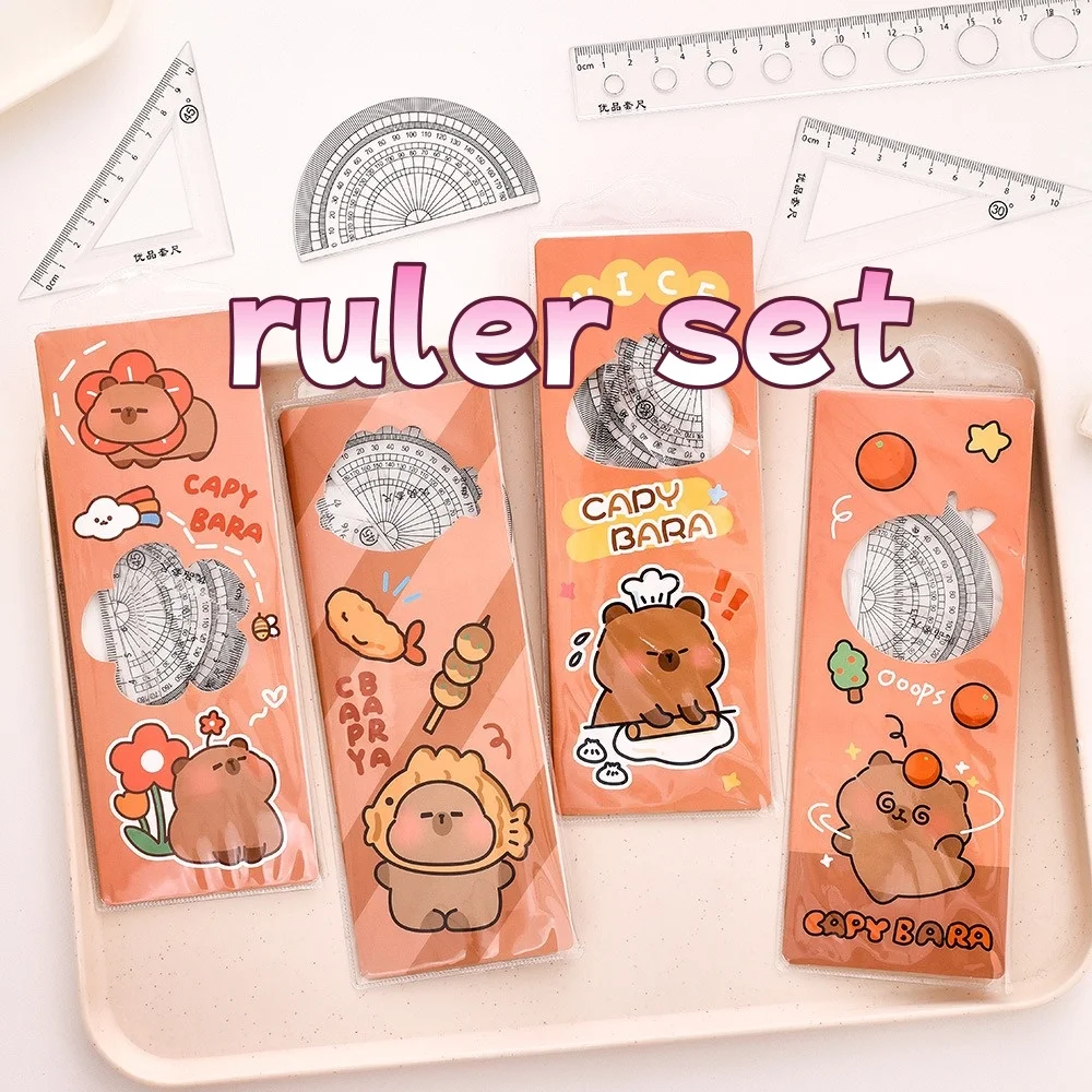 Capybara Ruler Set Student Geometry Tools with Protractor Cute School Aesthetic Prize Learning Gift for Kids Math Measuring