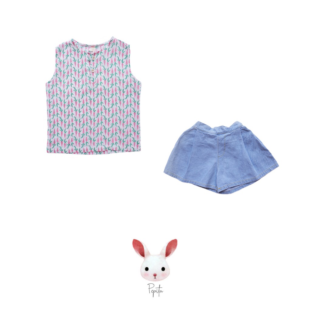 Top : L. Dada 72cm - Panjang 46cm ------ Bottom : L.Pinggang 56cm- L.Paha 50cm - Panjang 23cm