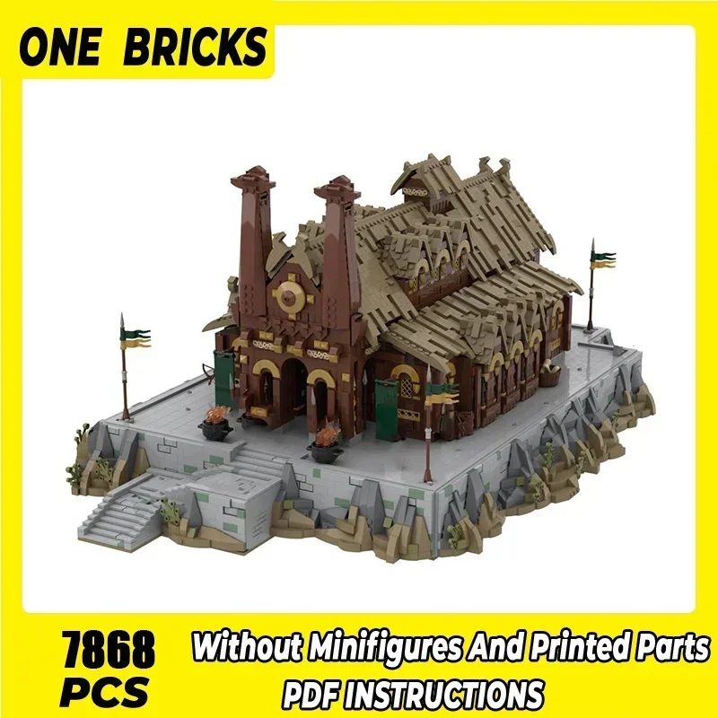 Castle Bricks Волшебные кольца Moc Строительные блоки Сцена фильма UCS Золотая модель зала DIY Сборка Вид на улицу Игрушки Подарки для детей