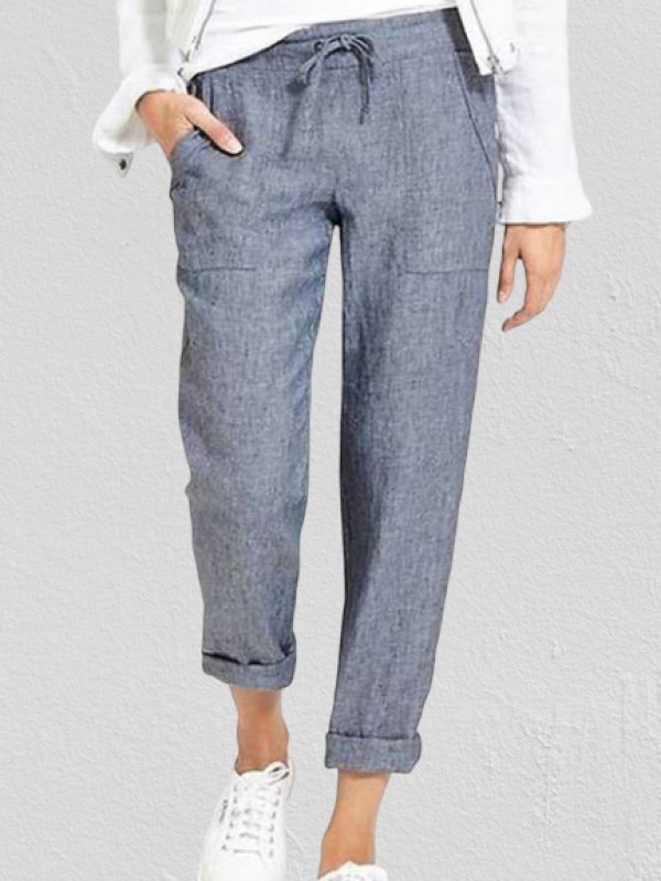 casual pants,casual drawstring high waist pocket loose cotton and linen pants