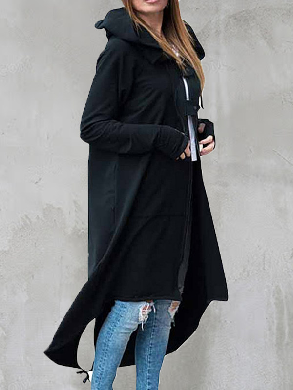 Casual Long Zipper Hooded Straight Jacket