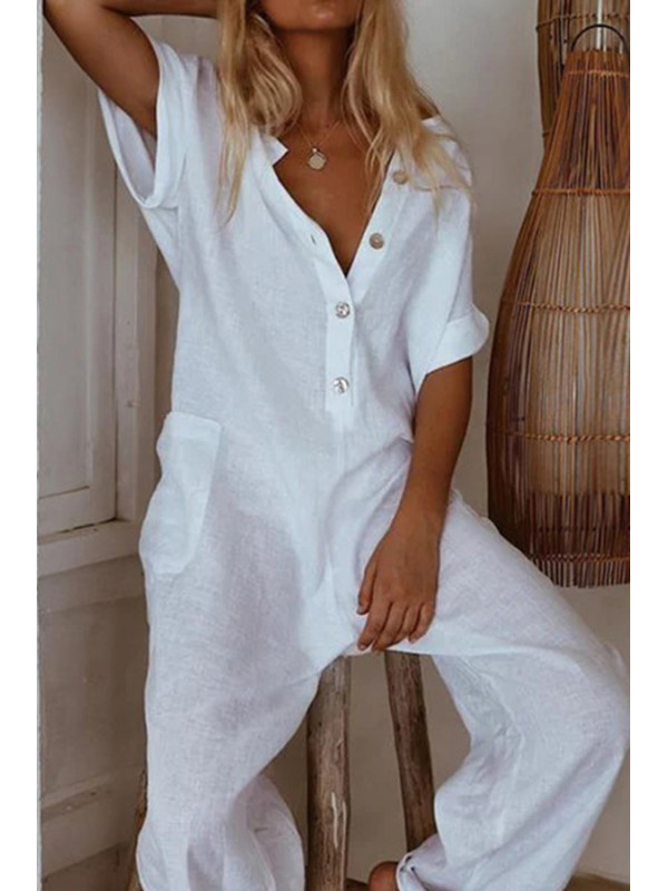 Casual Short Sleeve Pure Color Jumpsuits